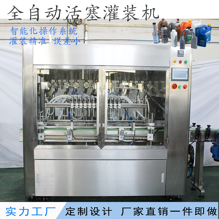 潤滑油汽車用品灌裝機,采用伺服控制灌裝容量,精度準,調(diào)節(jié)方便,進口PLC配合觸摸屏人機界面,適合于灌制從水劑到膏霜的各種黏度產(chǎn)品,適用于日化、醫(yī)藥、食品、農(nóng)藥等各個行業(yè)。